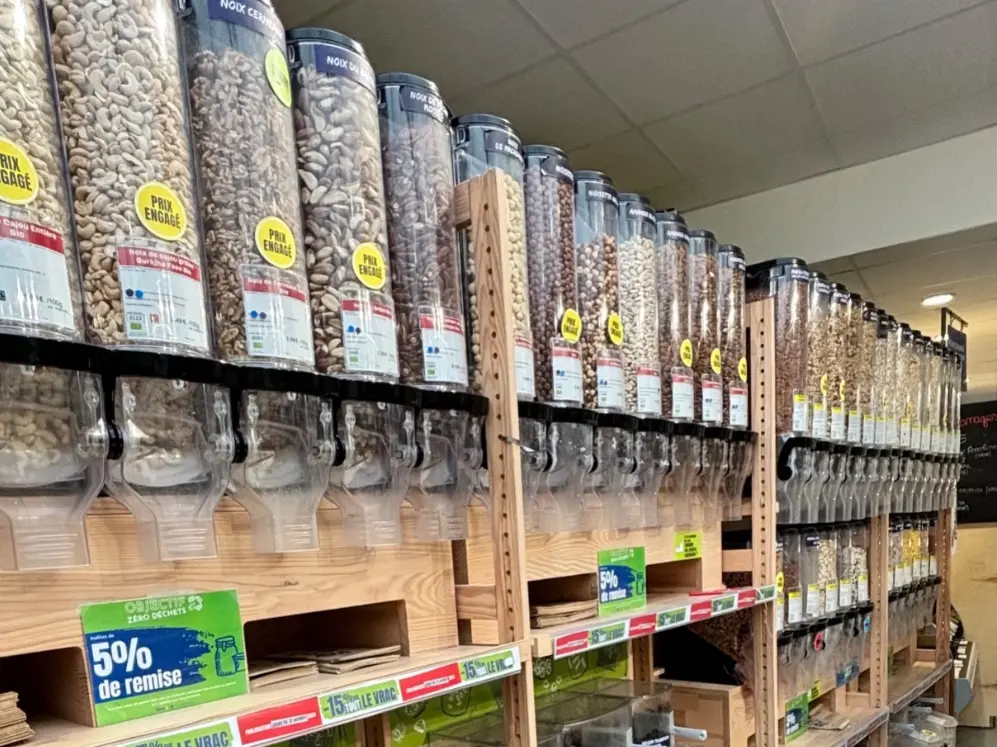 Engagé dans une démarche de consommation responsable, Biocoop Caen a mis l’accent sur un espace de 250 références de produits alimentaires et non alimentaires en vrac. Chacune d’elles est choisie avec attention en favorisant au maximum les producteurs locaux et en veillant à leur origine et leur composition.